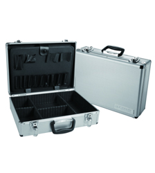 "流行的银白色条纹亚光处理,表面采用特殊涂层处 理,耐摩擦和轻度腐蚀 箱体内加宽的刚性金属骨架,抗冲击性能强。 箱体转角处防磨损的ABS包角及底部的橡胶支脚, 坚固耐用 随箱附带EVA隔板,可任意分割储藏空间"