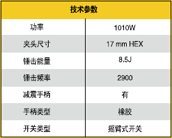1010W 马达和8.5J锤击能量,带来出色凿破速度和能量
