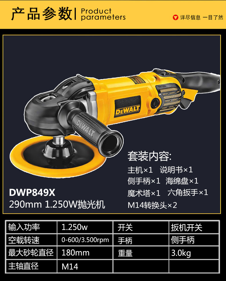得伟 DWP849X 180mm 1250 W 抛光机