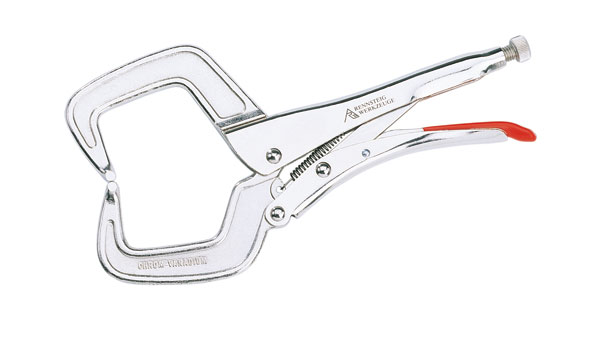 钳体完全采用钢板制作,夹持范围可通过肘杆来调整,具有快速夹紧和释放功能,钳体表面采用镀镍处理。 用于夹持体积较大的工件或深槽型材 钳口采用经高级淬火处理的铸铁锻造而成