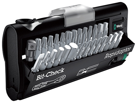 28个批头,1个带快速接头的批头接杆,1个870/1转接头(1/4"六角转接1/4"四角),1把维拉批头用棘轮扳手,通体全钢锻造,用于DIN ISO 1173-C6.3和E6.3标准的1/4"六角批头,以及维拉系列1和4的批头